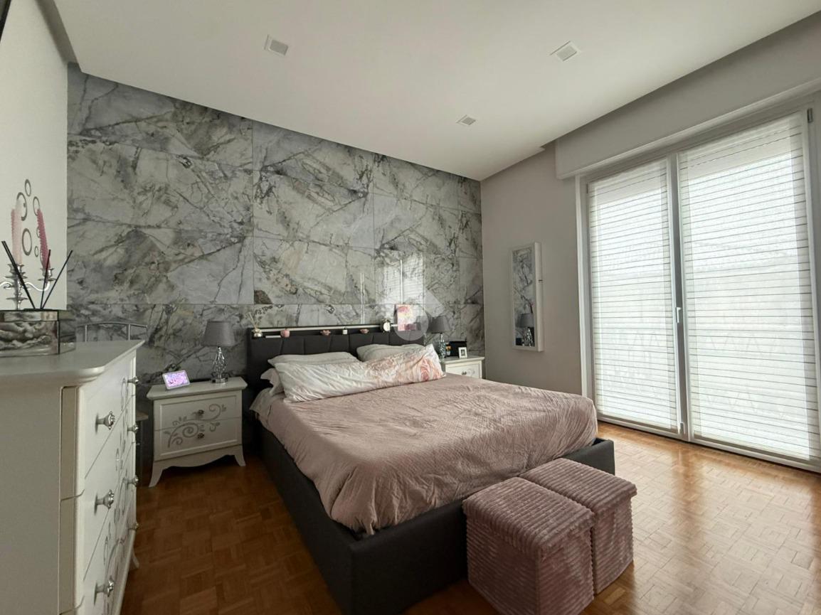 La zona notte comprende una camera matrimoniale con accesso al balcone, due camerette particolarmente spaziose e due servizi finestrati: il primo con vasca idromassaggio, il secondo completo di doccia e attacco lavatrice asciugatrice.