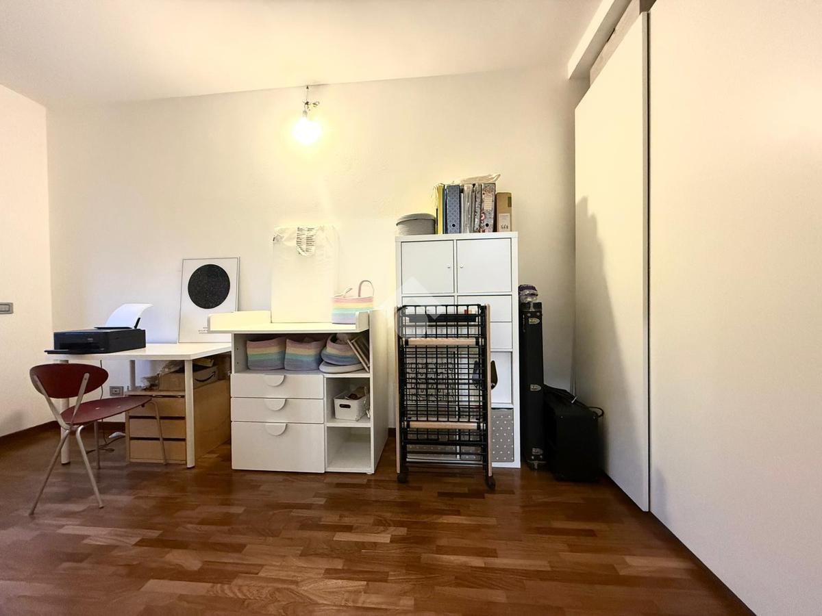 Completa la proprietà un comodo box doppio in larghezza, con annessa area esterna, e posto auto condominiale.