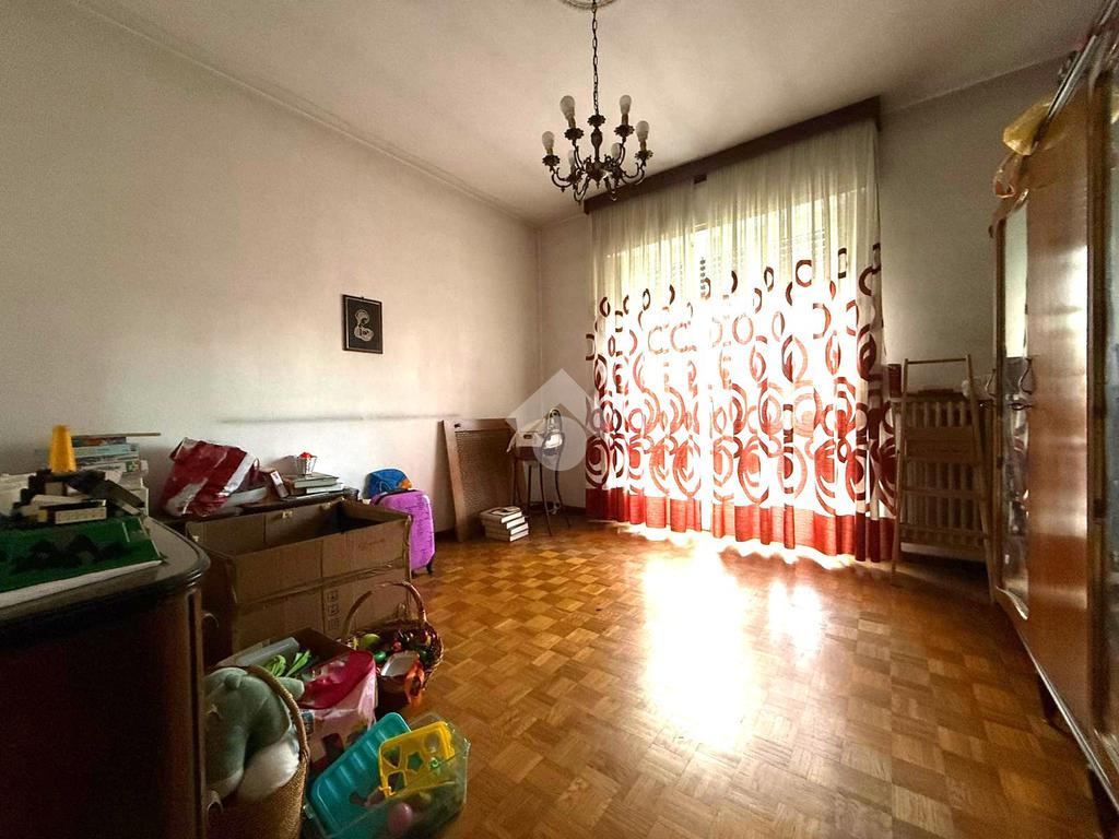 Al primo piano si trova l’appartamento principale ben distribuito. L’ingresso conduce alla zona giorno composta da un soggiorno luminoso e da una cucina abitabile separata, ambienti pensati per garantire comfort e funzionalità nella quotidianità. La zona notte ospita una spaziosa camera matrimoniale con accesso diretto al balcone, due camerette di ampia metratura, una delle quali con uscita sul balcone e un bagno. Gli spazi risultano ariosi e facilmente personalizzabili, adatti alle esigenze di una famiglia numerosa o di chi necessita di uno studio o locale hobby.