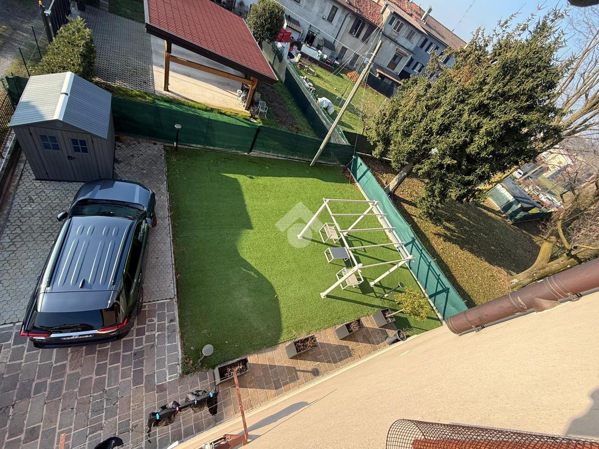 L'esterno è un vero angolo di paradiso: un bellissimo giardino privato di ampie dimensioni, curato nei minimi dettagli e rifinito con un moderno prato sintetico che garantisce ordine, pulizia e zero manutenzione durante tutto l'anno. Una soluzione rara che combina l’ampiezza dell’appartamento con la funzionalità degli spazi accessori in un contesto di totale indipendenza.